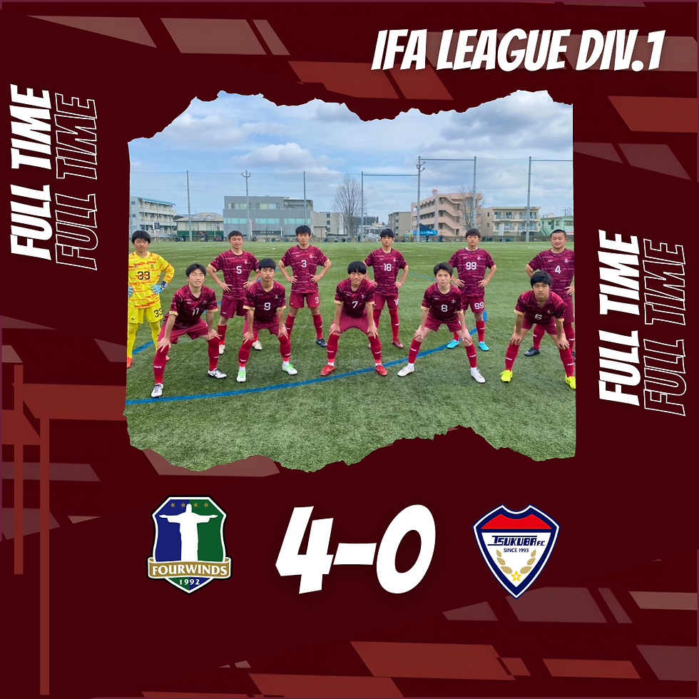 【JY/TOP】IFAリーグ1部 第1節2023年3月4日読了時間: 1分ジュニアユースの公式戦の試合結果をお知らせします。【JY/TOP】IFAリーグ1部 第1節日時:3/5(日) 11:30 キックオフ会場:筑波学院大学Tフィールド相手:つくばFC結果:前半 2-0 後半 2-0 合計 4-0たくさんの応援ありがとうございました!【IFAリーグ1部 順位表】https://www.goalnote.net/detail-standings.php?tid=14503